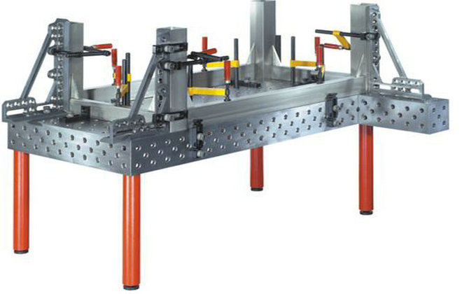 三維柔性焊接平臺材質:鑄造件(HT300),進行整體退火熱處理消除內應力后放置三到六個月自然時效處理。